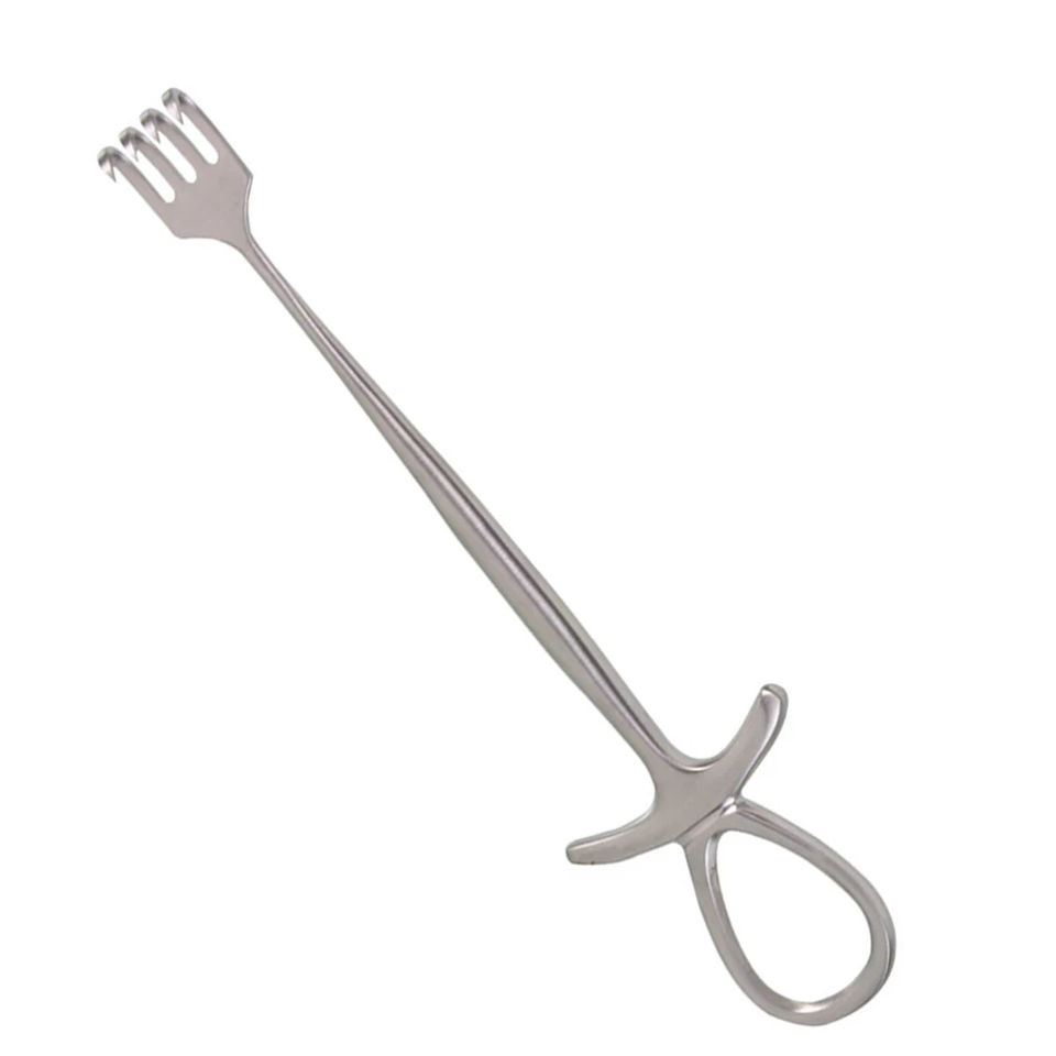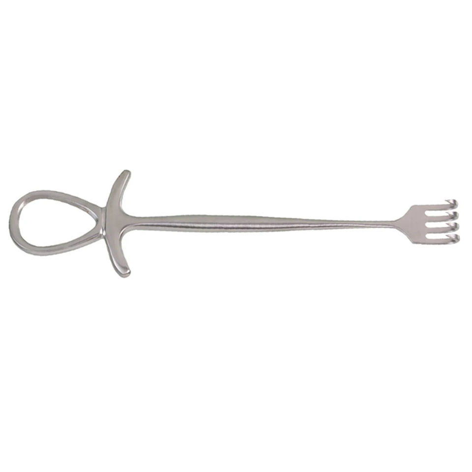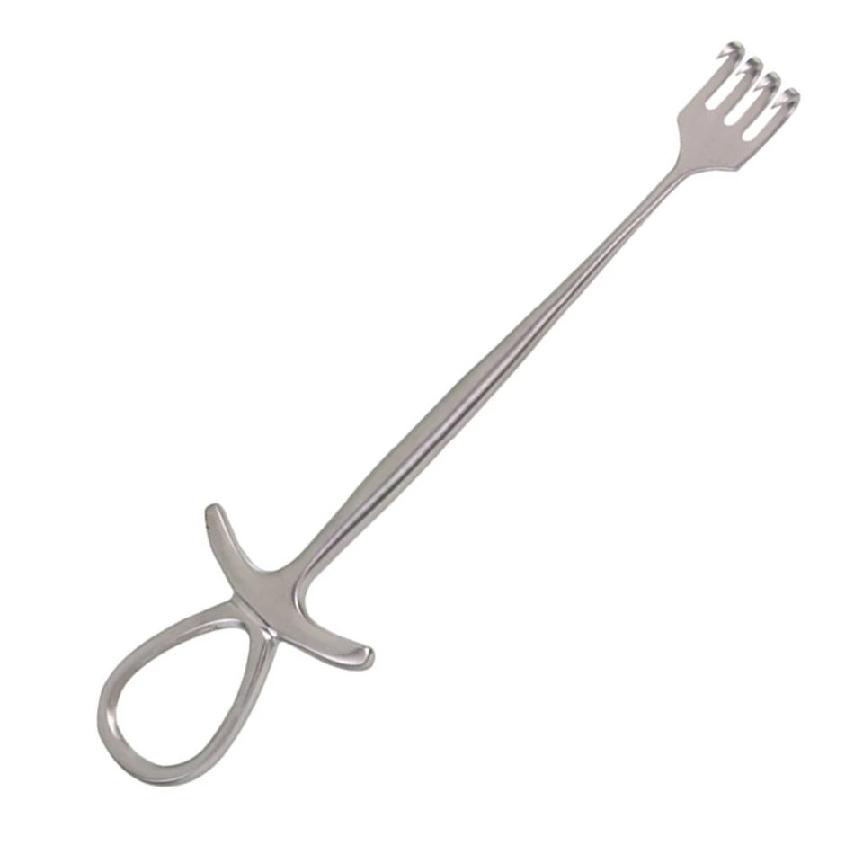 Retractor Quirúrgico Murphy de 4 Pulgadas, 4 Puntas Afiladas, 28 mm de Ancho, Mango Modificado Tipo Dedo, Herramienta Médica de Precisión Manual
