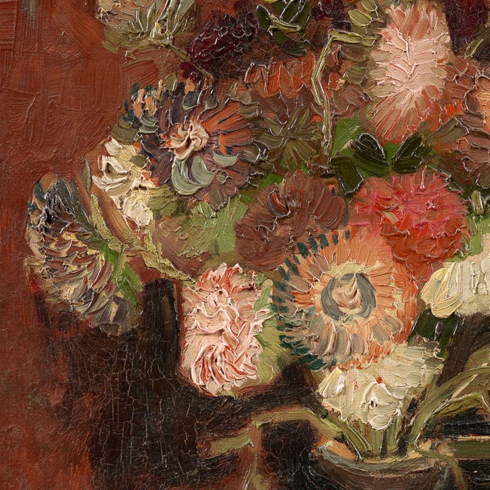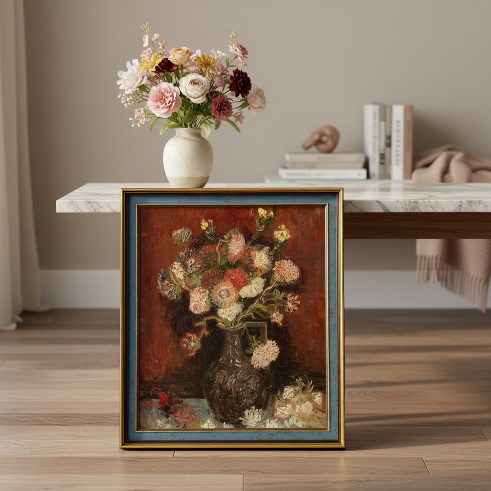 Reproducción a Nivel de Colección del Museo de la Pintura 'Asteras Chinas' de Vincent Van Gogh en Lienzo, Utilizando Tecnología Digital de Alta Resolución