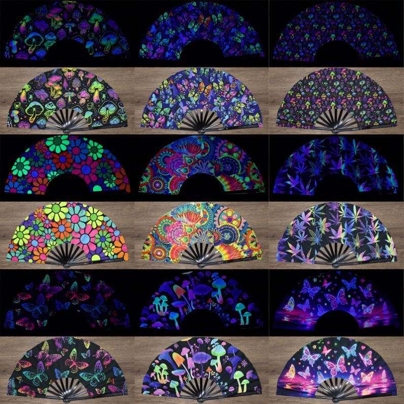 Abanico Plegable Grande con Diseño de Hongo Holográfico para Mujer, Estilo Chino Tradicional, para Decoración del Hogar