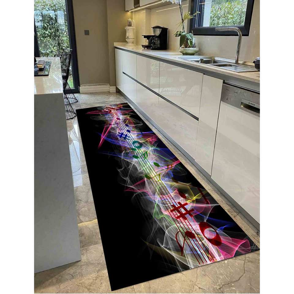 Alfombra con Estampado de Notas Musicales - Alfombra Negra para Sala de Música, con Pelo Suave