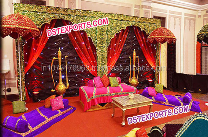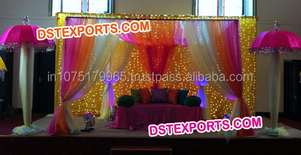 Decoraciones para el Fondo del Escenario de Boda India Musulmana, Mehandi, Sangeet, Evento, Función, Color Personalizado