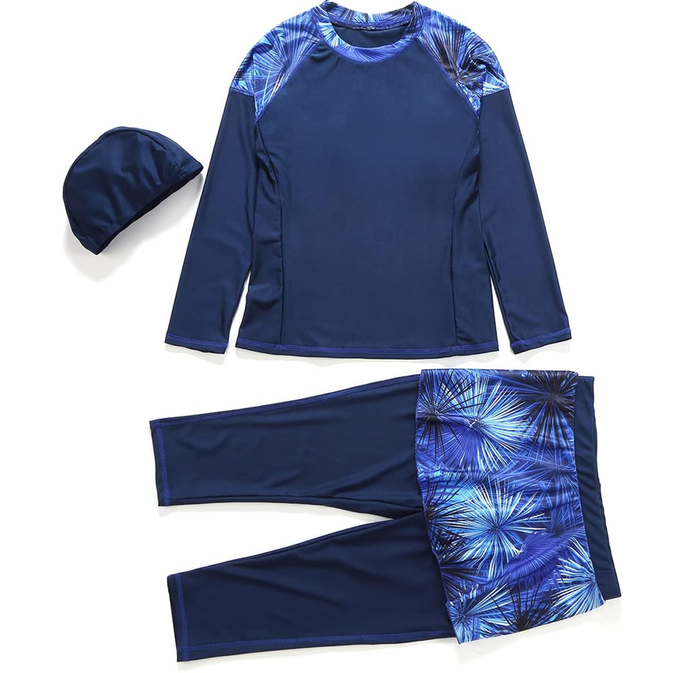 Traje de Baño Musulmán Modesto de Dos Piezas con Estampado para Mujer, Corte Alto, Material Spandex/Nylon, Logotipo Frontal