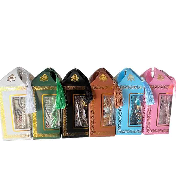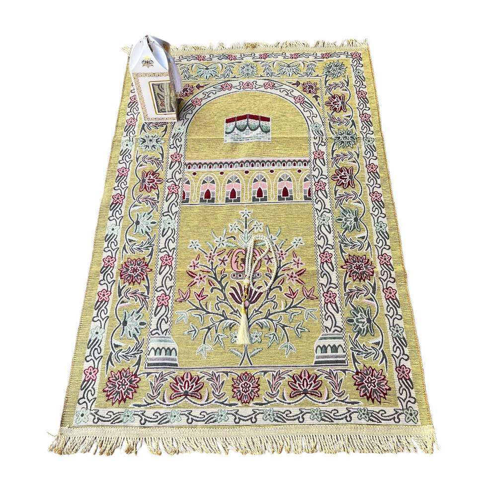Juego de Alfombras de Oración Musulmana para Asia Central - Alfombra con Flecos de 3 Piezas con Cuentas de Tasbih y Caja de Almacenamiento, Accesorios Completos para la Oración Islámica