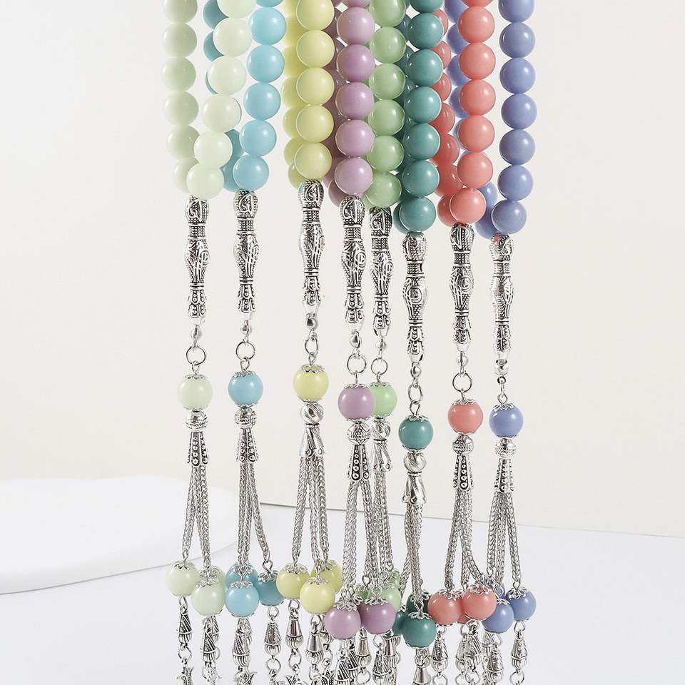 Rosario musulmán Color acrílico oración pulsera 33 piezas contando oración cuentas islámica Tasbih