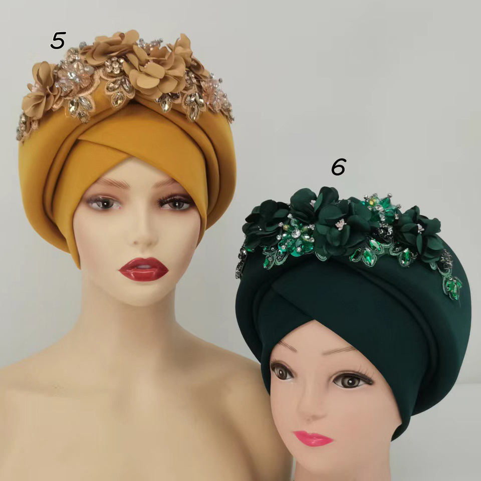 Turbantes Musulmanes con Pedrería, Pañuelo para la Cabeza a Rayas, Moda Aso Oke, para Negocios, Fiestas, Playa, Mujeres Africanas, Casual, Poliéster