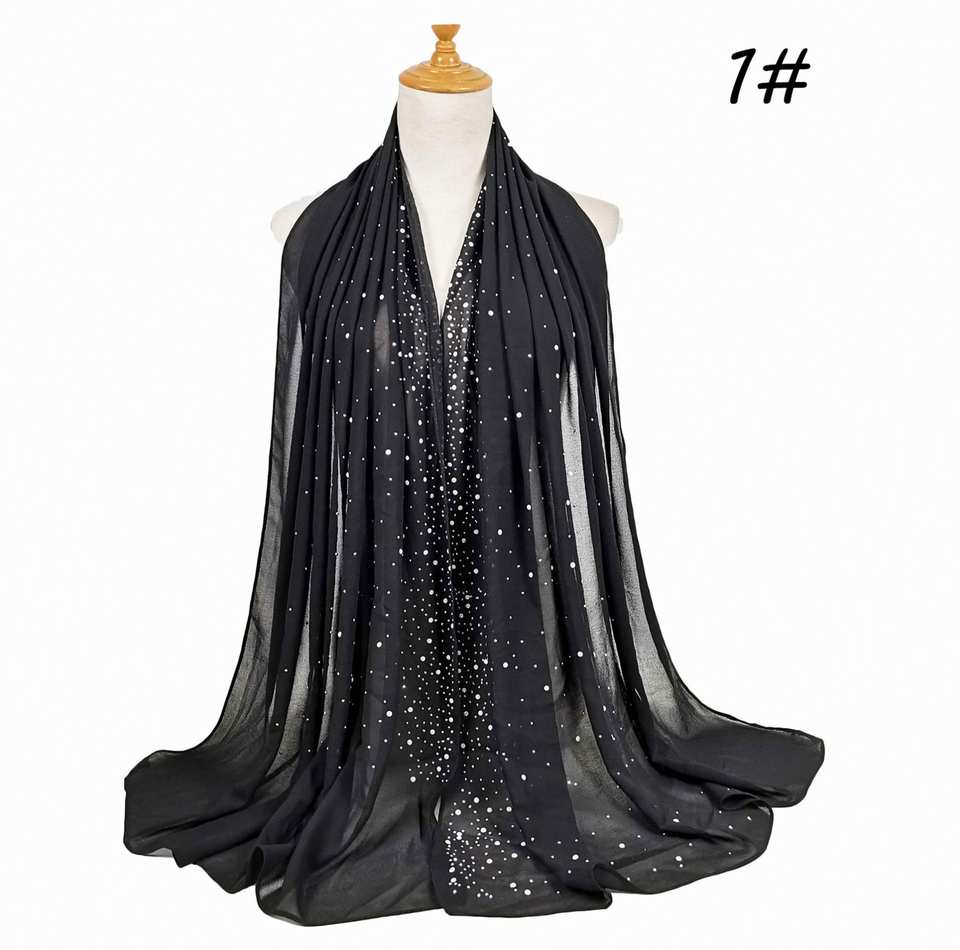 Hiyab de Chifón con Pedrería y Perlas de Color Puro para Mujeres Musulmanas, Alta Calidad, Cuatro Estaciones, Logotipo Personalizado Disponible