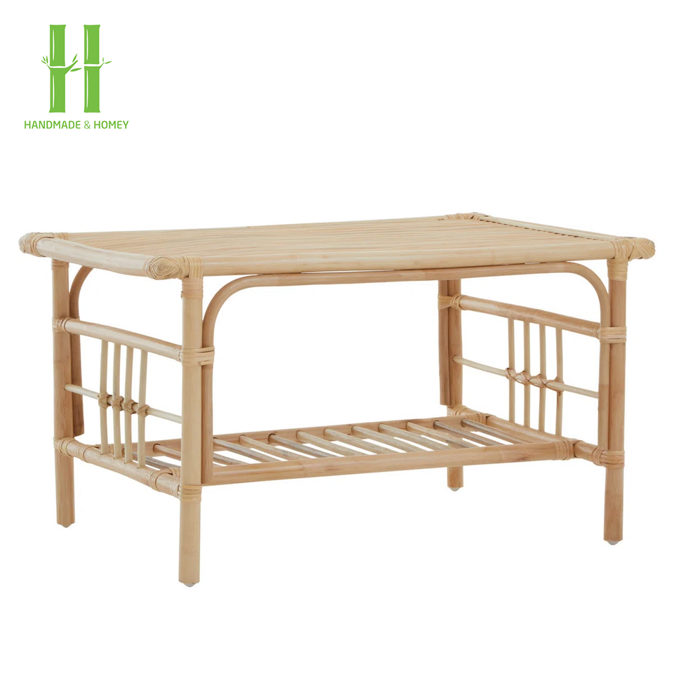 Mesa de Centro Moderna de Ratán y Madera Hecha a Mano, Decorativa, Ecológica, Duradera, Novedad, Estilo Único