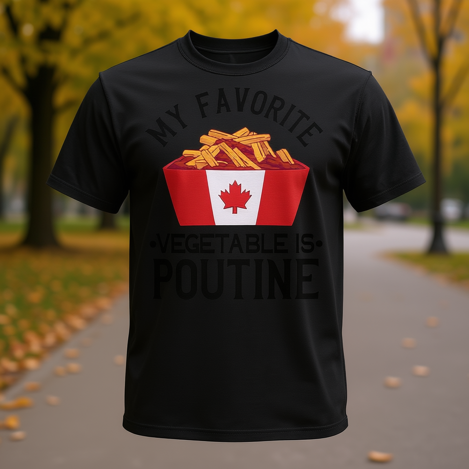 Camiseta con estampado digital de la verdura favorita de cada uno, Poutine, comida canadiense, unisex, para adultos, manga corta, cuello redondo