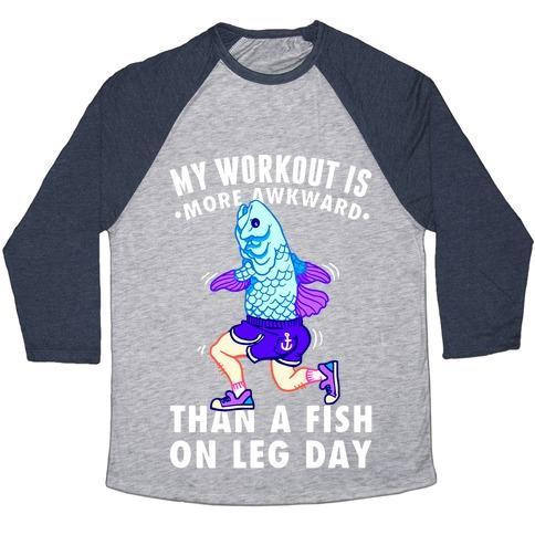 Mi entrenamiento es más incómodo que un pez en el día del leg day, camiseta de béisbol unisex de mezcla triple.