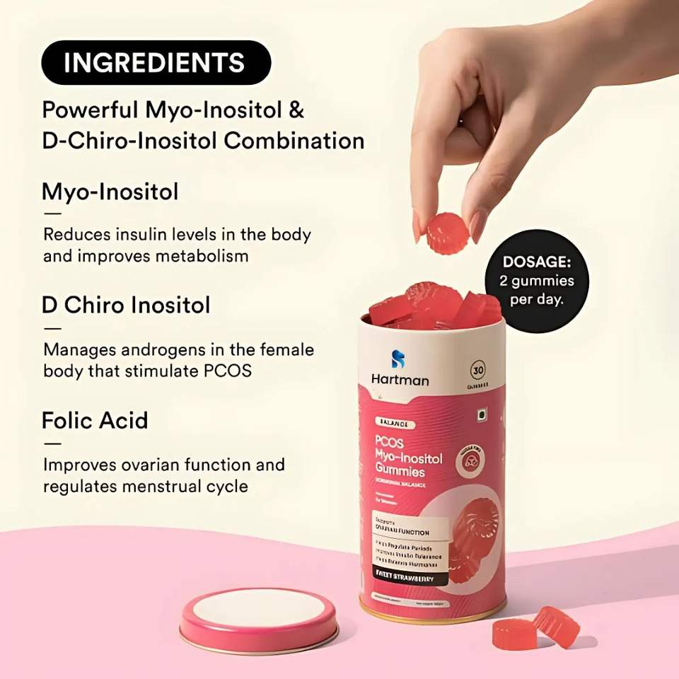 Gomitas Myo Inositol para PCOS, soporte para períodos irregulares, cambios de humor y equilibrio hormonal