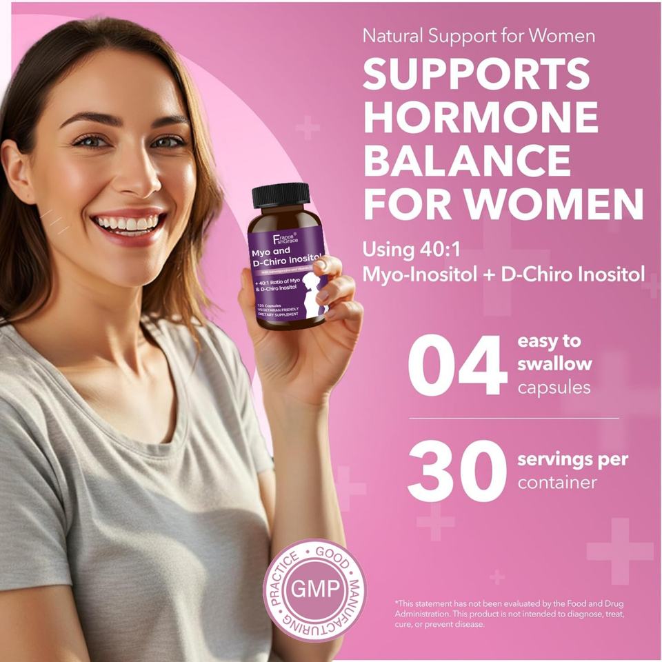 Cápsulas de Mioinositol y D-Chiroinositol, 120 Cápsulas, Favorecen la Salud Ovárica, Suplementos de Mioinositol y D-Chiroinositol