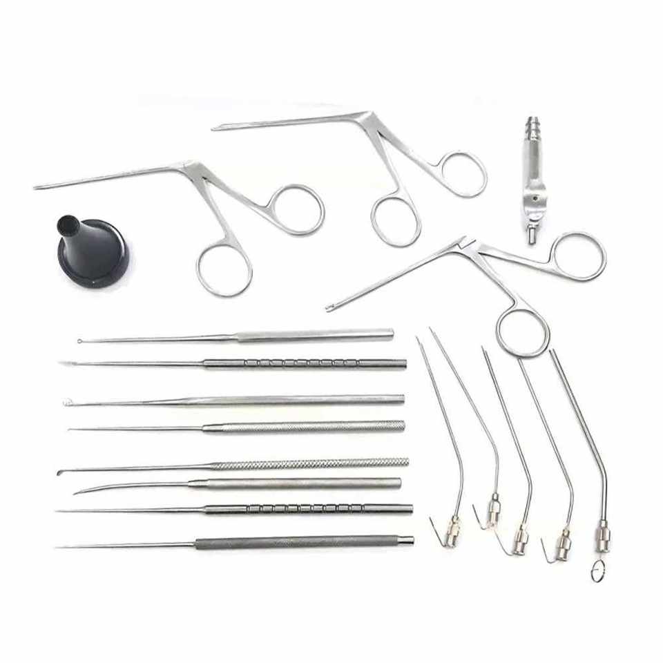 Juego de Instrumentos para Miringotomía de 15 Piezas, Herramientas Quirúrgicas Manuales de ORL para Cirugía de Oído, Nariz y Garganta, Acero Inoxidable de Grado Hospitalario, CE
