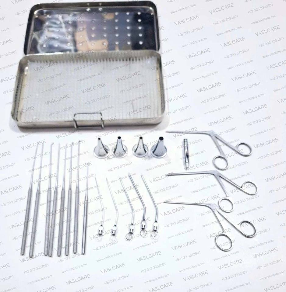 Juego de Instrumentos para Miringotomía de 15 Piezas, Acero Inoxidable, Kit Quirúrgico de Otología y Miringoplastia ENT de Vaslcare