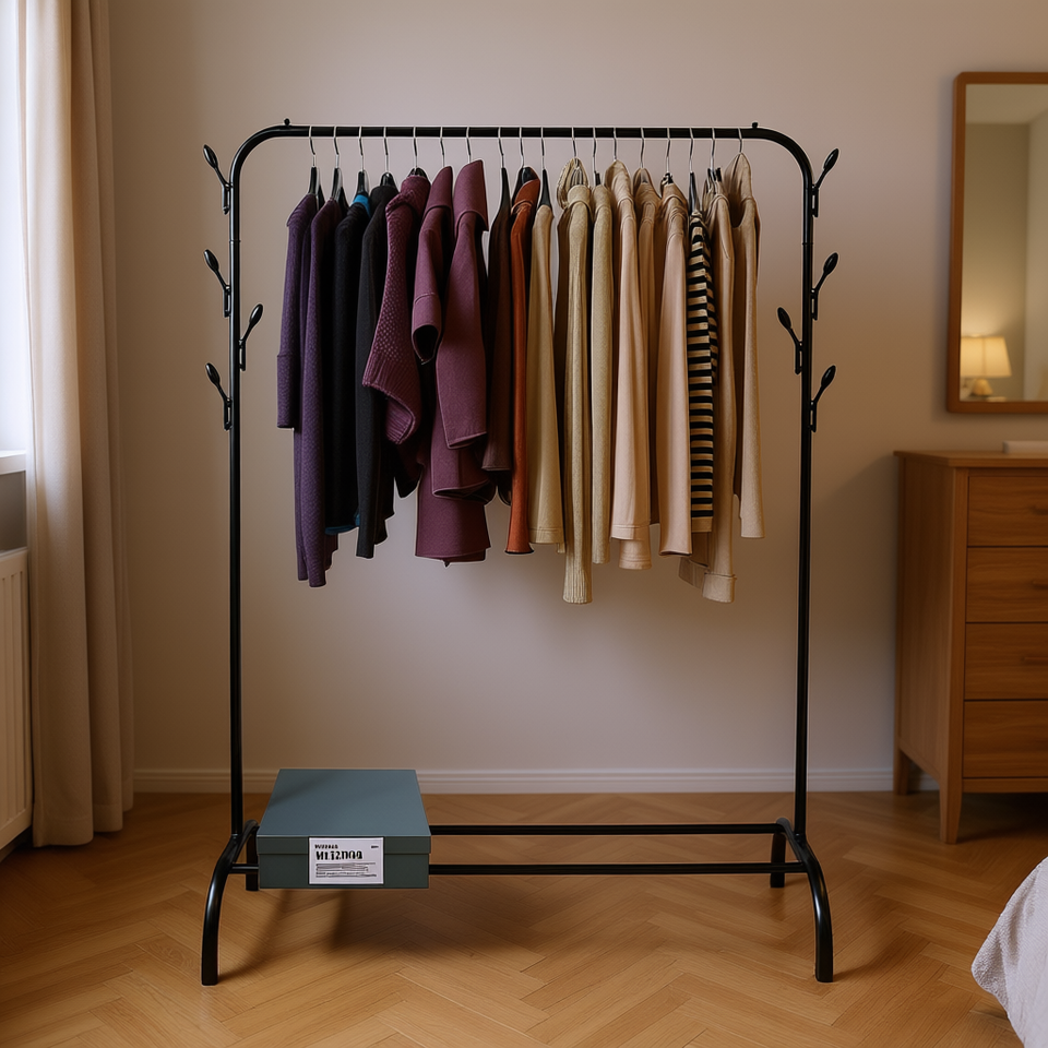 Perchero de ropa Myrva de un solo nivel, metálico, de pie, diseño minimalista para camisas