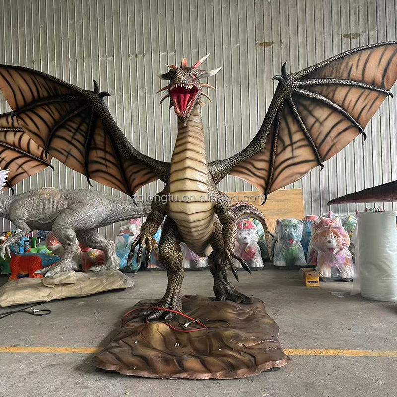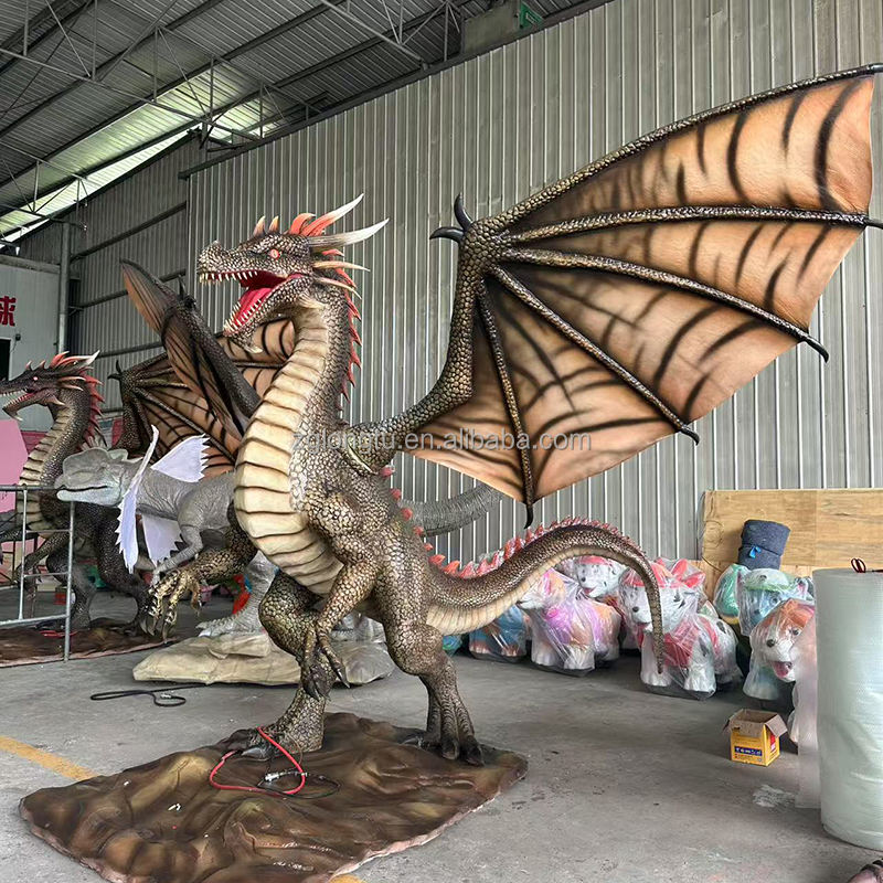 Exhibición de Instalación Dinámica de Criatura Mítica Robot Realista Dragón Animatrónico de Tamaño Real para Parque Temático
