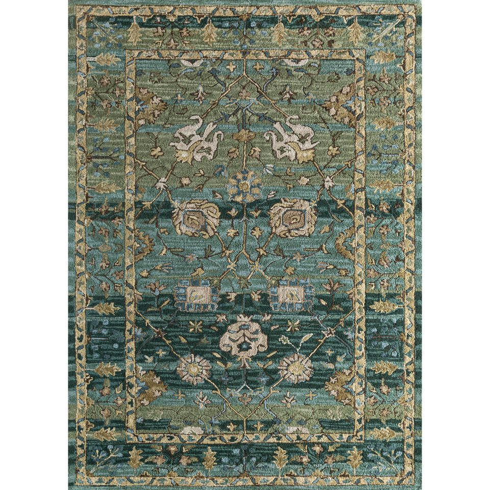 Alfombra de Lana Tejida a Mano Mythos Green con Diseño Floral, Rectangular de 9x12, 10 mm, para Sala de Estar, Pasillo, Modelo Tla-4063, Alfombras Jaipur ZA