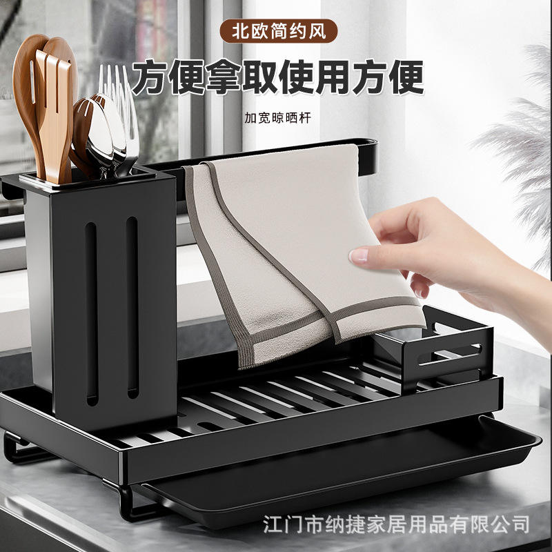 Escurridor de Cocina Myz, Negro, Cuadrado, Multiusos, Colgante, para Encimera, Porta Esponjas y Paños de Cocina, Cesta de Drenaje