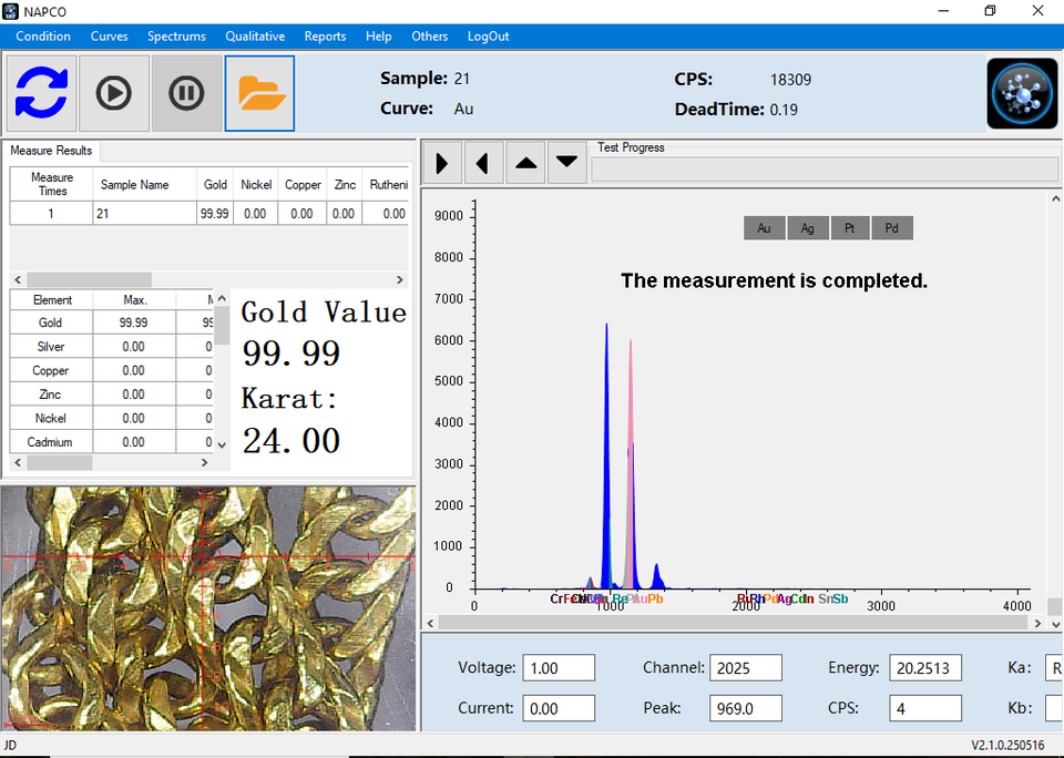 Elementos comprobables:Au / Ag / Cu / Zn / Ni / Pt / Cd / Pd / In /Pb