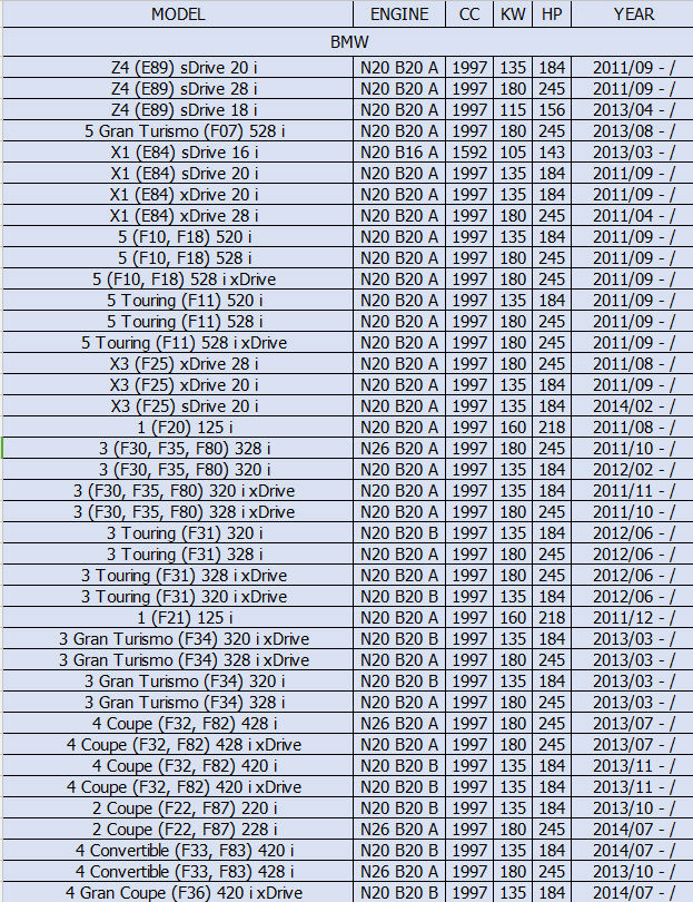 N20 N26Código de motor