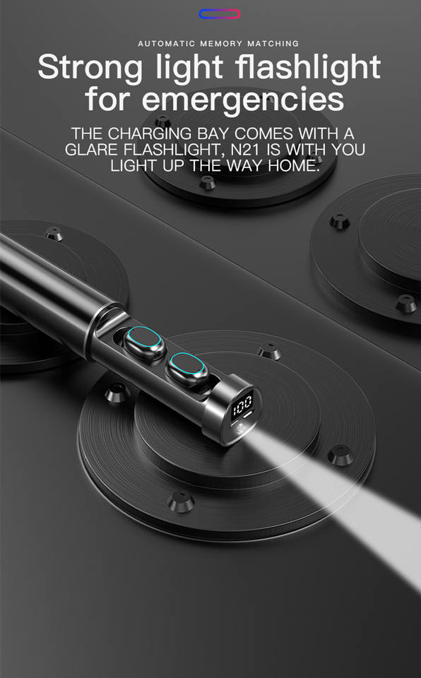 Audífonos N21 Tws con Linterna, Control Táctil, BT 5.2, con Micrófono, Auriculares Hifi, Mini Audífonos Deportivos Inalámbricos