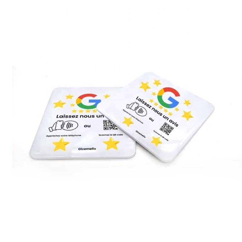 N216 Impresión a todo color Google Review NFC Mesa de menú Etiquetas epoxi en metal para restaurante Ins/Facebook/Yelp/Tripadvisor