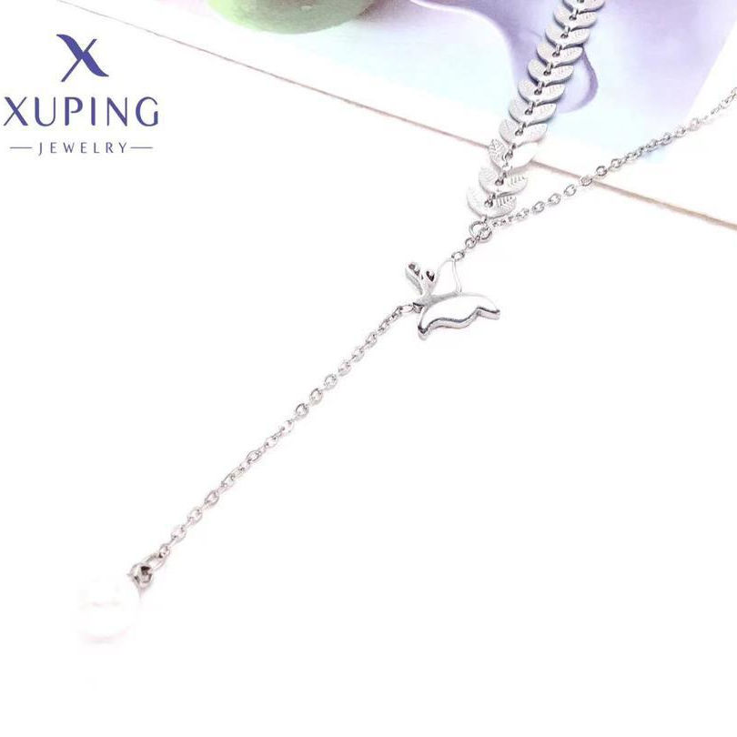 N627 Xuping joyería al por mayor cabeza de conejo anillo cuenta mariposa hoja negro rectángulo platino plateado collar de acero inoxidable