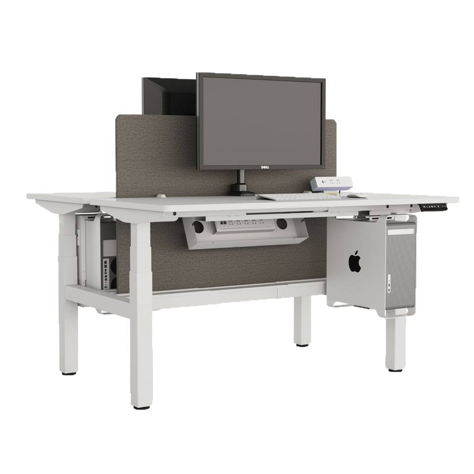 Escritorio Doble para Computadora NATE, Ajustable en Altura Eléctricamente, Marco Blanco, Escritorio de Oficina de Grado de Ingeniería