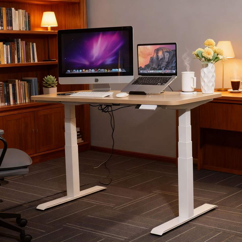 Pata de Escritorio Ajustable en Altura NATE, Motor Dual, 4 Secciones, Metal, Escritorio de Oficina para Computadora, Marco Blanco, Personalizable
