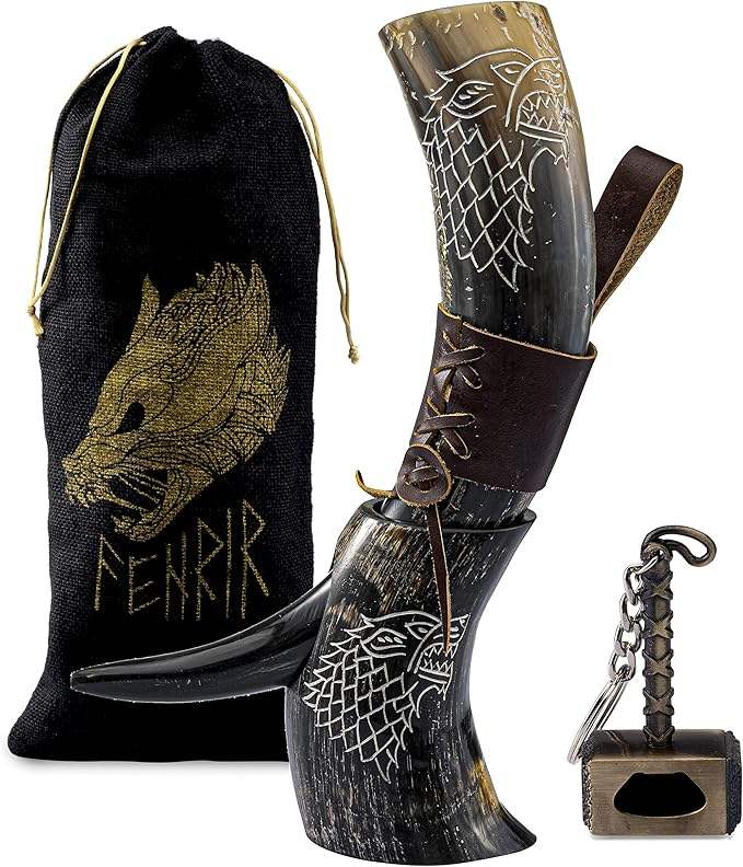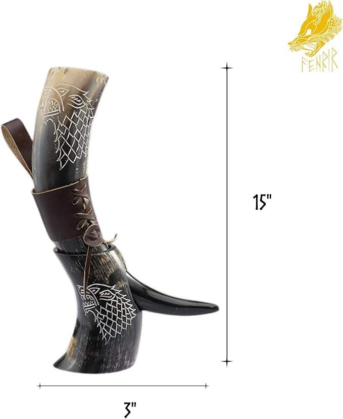 Cuerno de Búfalo Natural para Beber con Soporte de Hierro