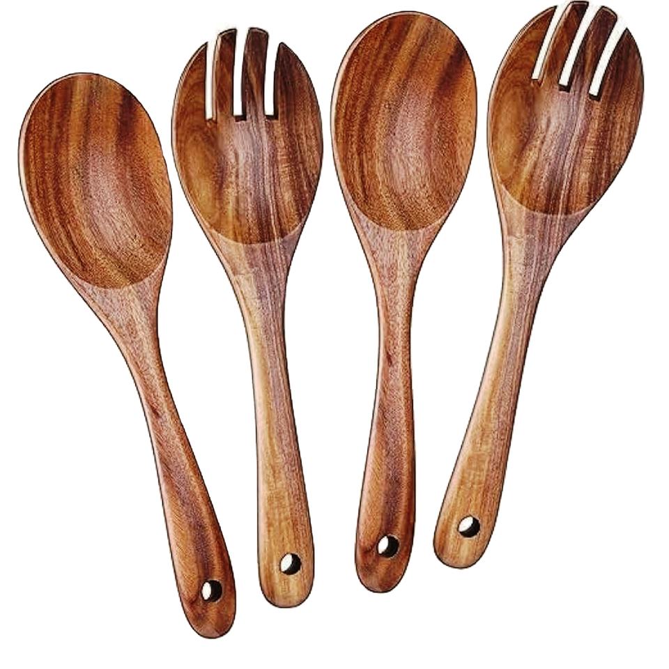 Juego de 2 cuencos de Venta caliente de COLOR NATURAL hecho en La India Incluye juego de servidor de ensalada de madera