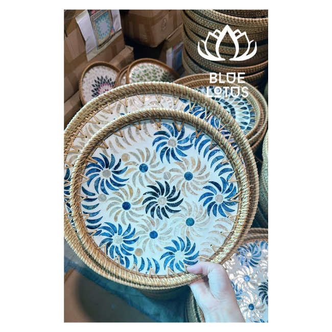 Bandeja de incrustaciones de ratán NATURAL: almacenamiento ecológico, exhibición decorativa, servicio de té de lujo-LOTO AZUL VIETNAM