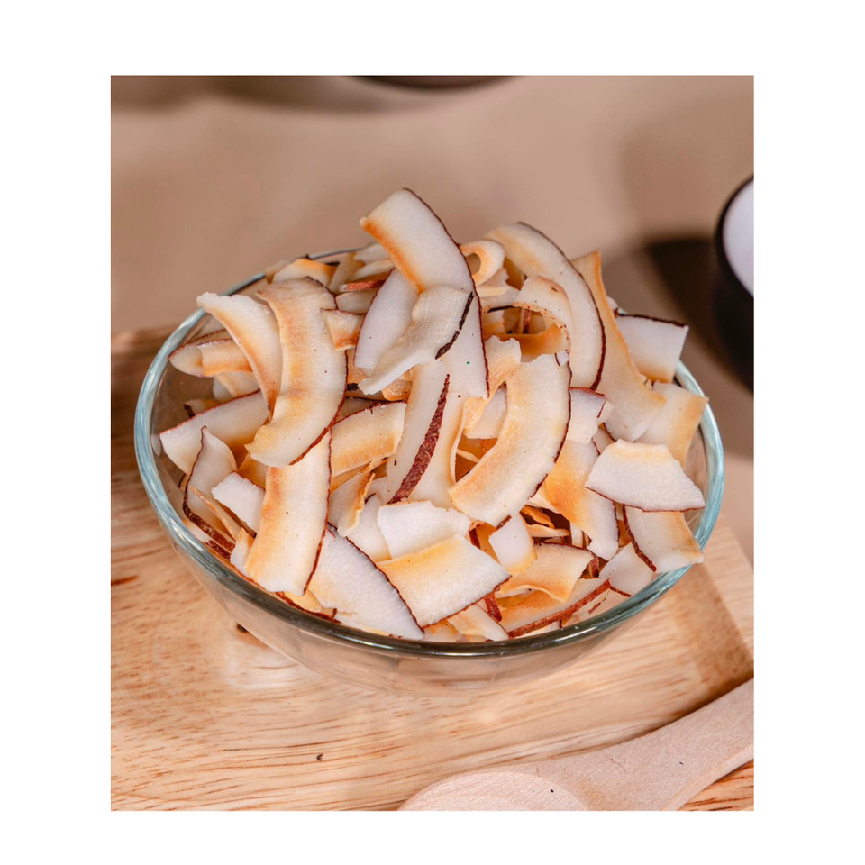 CHIPS DE COCO CRUJIENTES DE VIETNAM DE PRIMERA CALIDAD, CON AROMA NATURAL A DULCE Y TEXTURA CRUJIENTE, PERFECTOS PARA MERIENDAS Y RECIPIENTES.