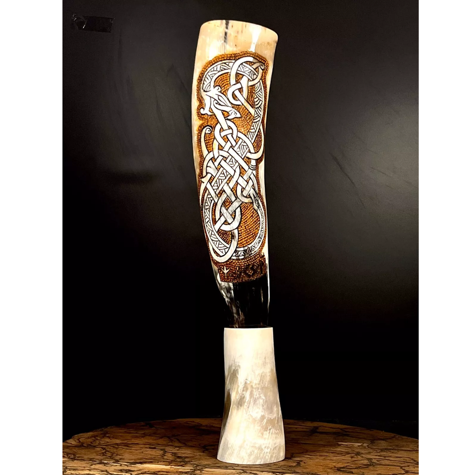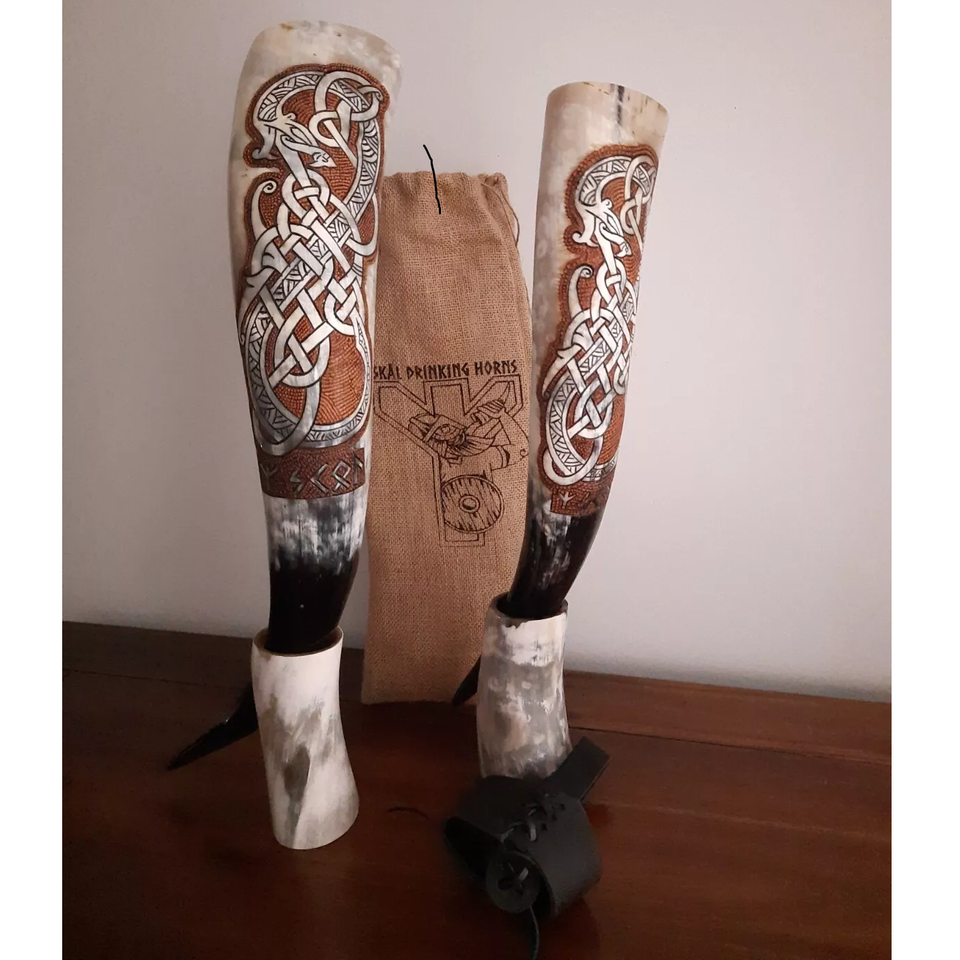 Cuerno Natural para Beber Estilo Vikingo con Soporte, Rústico, por HANNAN HANDICRAFT
