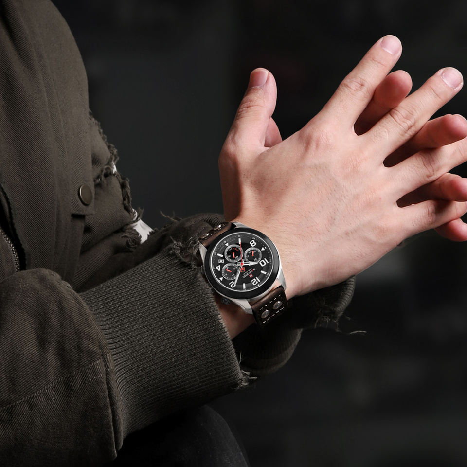 NAVIFORCE 1006 Hombres Reloj de campo Cronógrafo solar Reloj Piloto Relojes vintage Fabricante