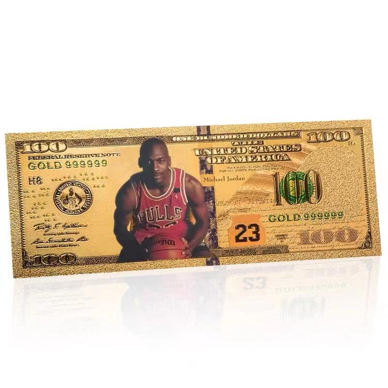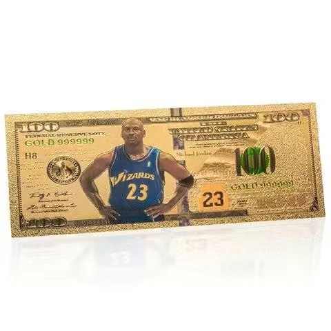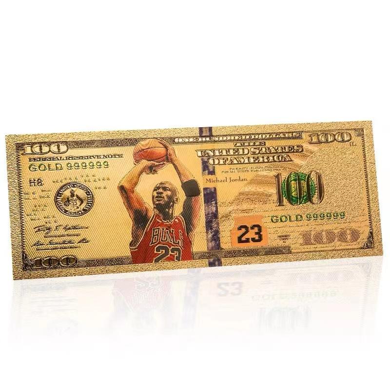 Billete Conmemorativo de Michael Jordan de la NBA, Billete de Plástico con Lámina Dorada, Regalo de Transmisión en Vivo, Colección