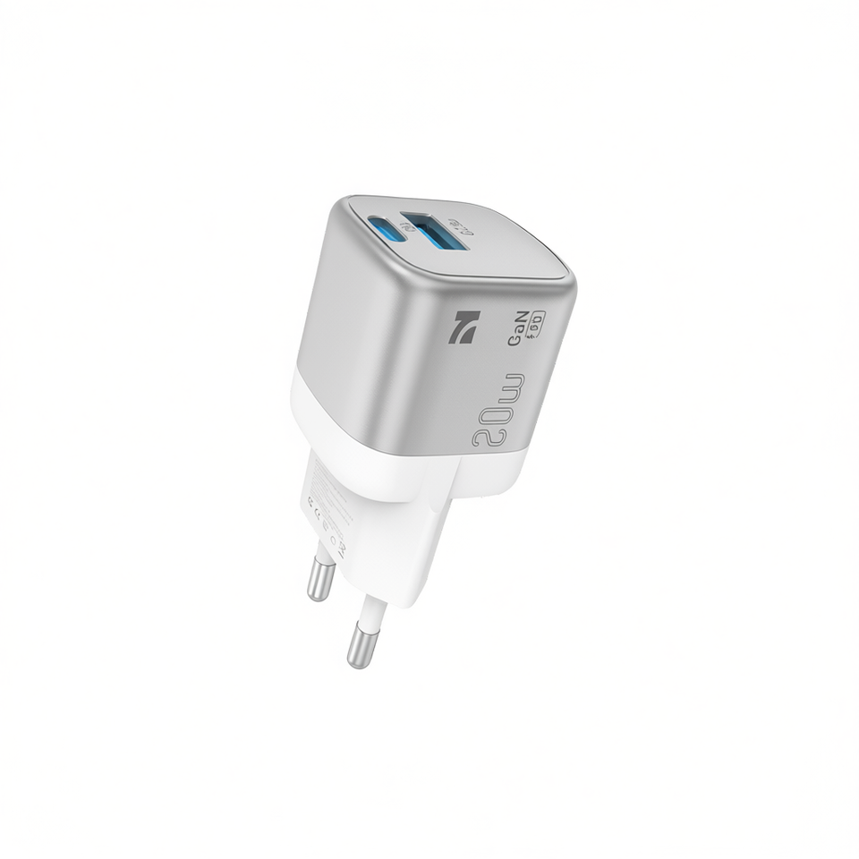 Cargador Rápido Dual Compacto y Seguro NCC CD-0102 EU 20W GaN USB-A + USB-C Negro