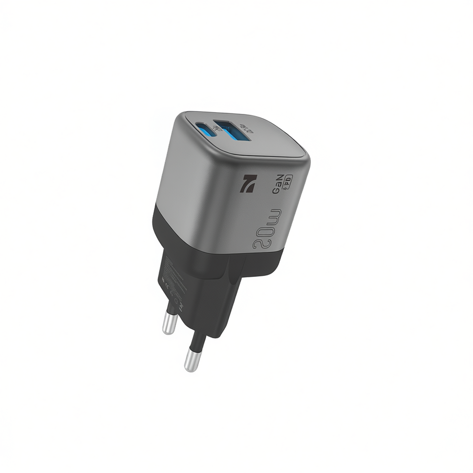Cargador Rápido Dual Compacto y Seguro NCC CD-0102 EU 20W GaN USB-A + USB-C Blanco