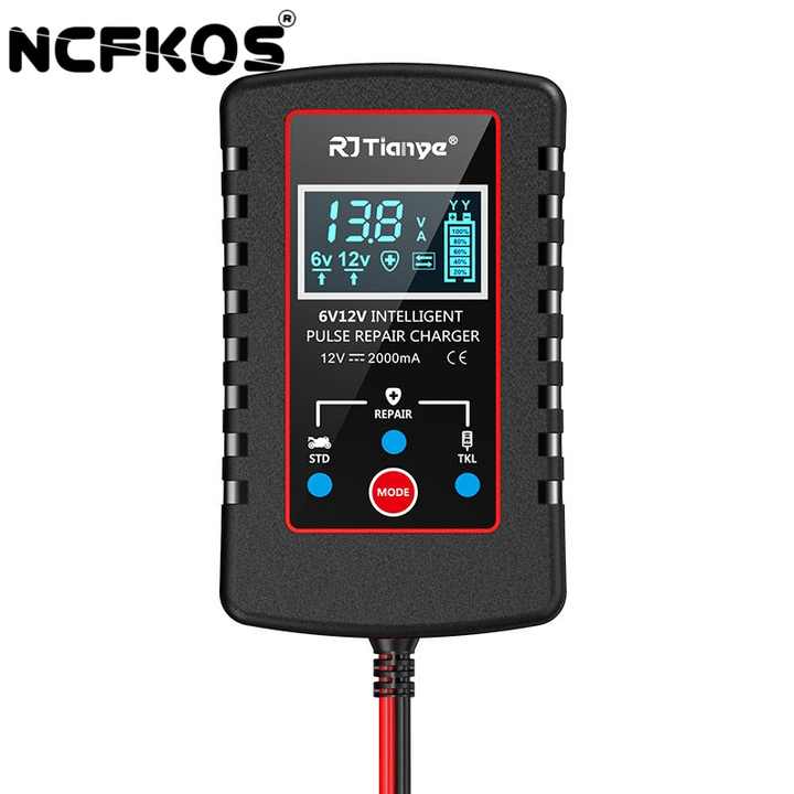 Cargador de Batería Inteligente Automático para Motocicleta NCFKOS, 6V 12V 2A, Cargador Universal de Batería de Plomo-Ácido con Reparación por Pulsos y Conector SAE