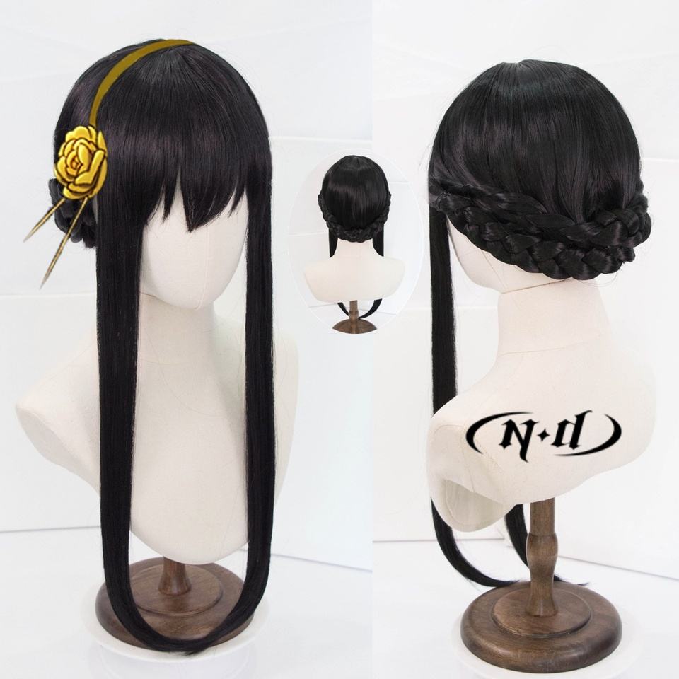 Peluca de fibra resistente al calor sin pegamento para cosplay de ND Yor Forger con gorro de malla de rosas y densidad del 130%