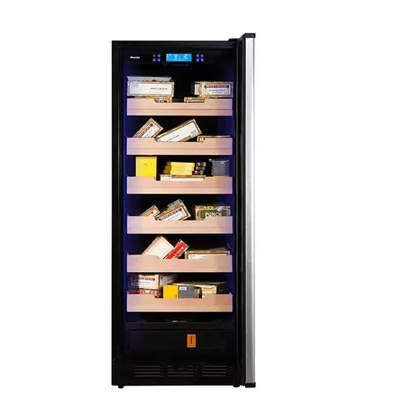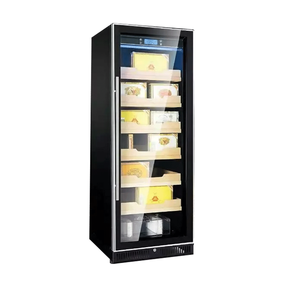 Caja de cigarros de madera maciza NE-152, puerta de vidrio antivaho, Humidificador inteligente con Control de humedad, gabinete de cigarros con seis estantes de haya