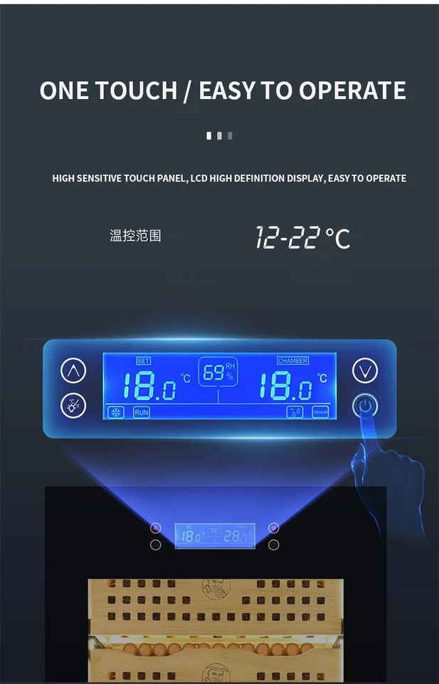 NE-174 Panel táctil preciso Humidor de cigarros Control de temperatura Puerta de vidrio antivaho Gabinete de cigarros con luz Led naranja