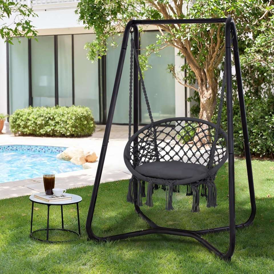 NUEVO SILLÓN COLGANTE DE RATÁN PARA TODOS LOS TIEMPOS - Asiento Individual con Cojín Extraíble para Jardín o Patio, Esponja Impermeable
