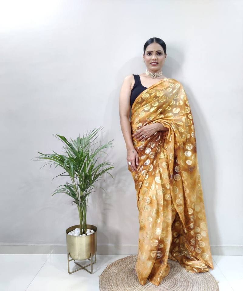 NUEVA LLEGADA GEORGETTE IMPRESO LISTO PARA USAR SAREE CON BLUSA SIN COSTAR DESCOSTE DESPIECE FIESTA PRECIO AL POR MAYOR ROPA ÉTNICA AMARILLO