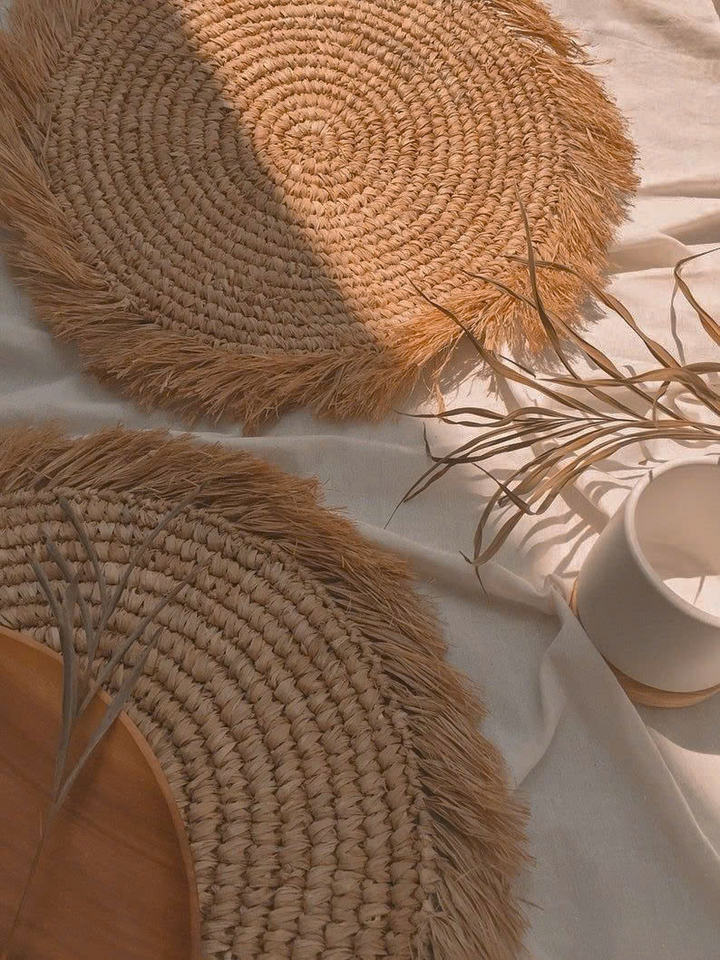 NUEVA LLEGADA Manteles individuales redondos de rafia de alta calidad AL POR MAYOR
