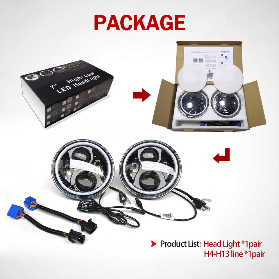 Nombre de los productos:Faro LED Redondo de 7 Pulgadas con Ojos de Ángel RGB de 12 Voltios