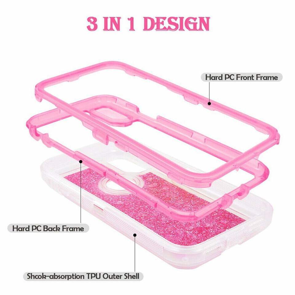 NUEVA Funda Protectora Resistente Blingbling Liquid Quicksand Defender para iPhone 12 13 Mini 11 14 15 16 Pro Max 6 7 8 Plus XS XR SE2