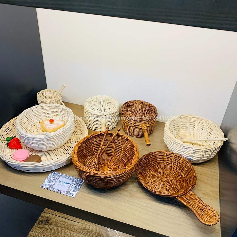 ¡NUEVO DISEÑO! Juego de Cocina de Mimbre para Niños, Accesorios de Juguete, Ollas y Sartenes de Mimbre para Niños y Bebés