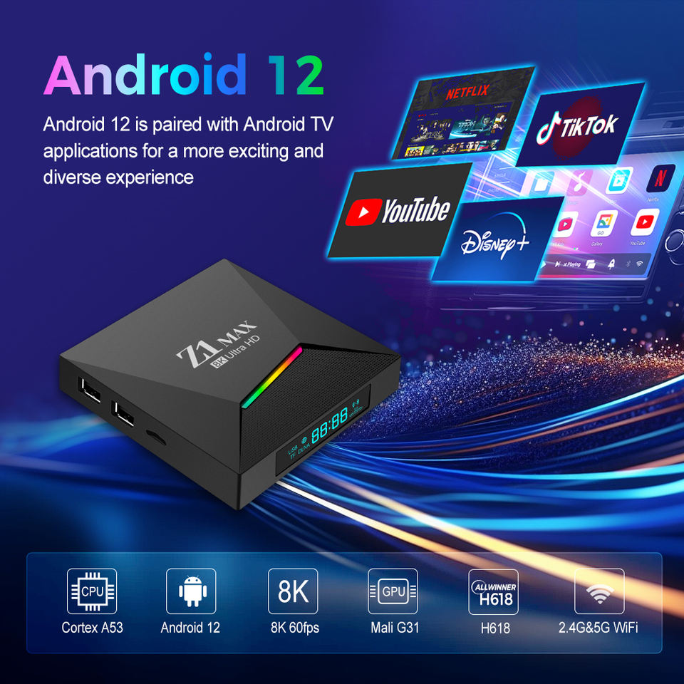NUEVO Receptor de TV Digital Android 12 Z1MAX de Fábrica, Receptor de TV Digital OEM ODM Gratuito, Receptor de TV Android 4k