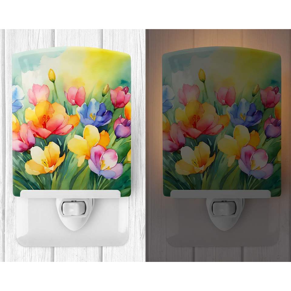 Nueva luz nocturna de cerámica de acuarela Freesias con certificación UL 6x4x3 Multicolor para dormitorio, baño, guardería, pasillo, cocina