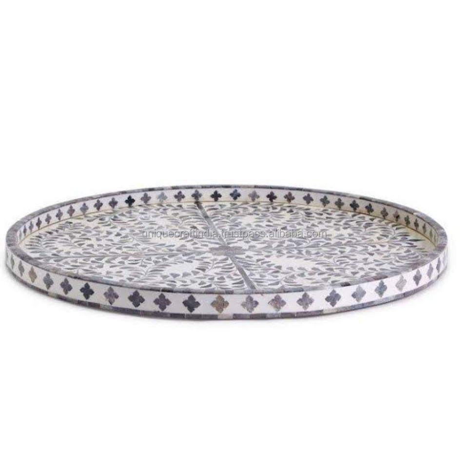 NUEVO LANZAMIENTO | Bandeja con incrustaciones de hueso HexaLuxe | Bandeja hexagonal Premium en blanco y negro para servir llamativos, decoración de lujo e interiores